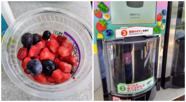 私は「ベリーベリーヨーグルト」にしました。支払いを済ませ、いざ機械の前へ。