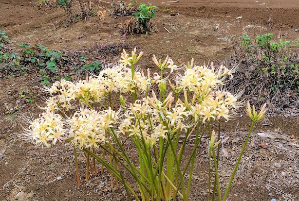 そうそう、無印で買い物をして帰る途中に畑の中にヒガンバナを見つけました。こんな色のヒガンバナもあるんですね。