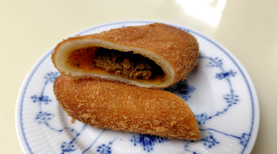 お皿の上はカレーパンです。このカレーパンもすごかった、生地がほんのりと甘くて中のカレーはしっかり濃厚、さすがの美味しさでした。生地がナンの様な味なのかな?薄いのも好み。袋に入って売られていて、そのままパクっと食べやすい形なのも流石です。