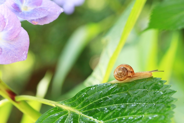 梅雨の時期、アジサイの葉の上にカタツムリなんてすごく絵になりますよね。そんな風景がとても懐かしいな。